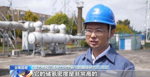 南方電網(wǎng)云南電力科學(xué)研究院高級(jí)研究員鄭欣:能夠儲(chǔ)存200立方米的氫氣,它的儲(chǔ)氫密度是非常高的,如果換成普通的常用的三個(gè)兆帕的儲(chǔ)氫罐,體積要增加20倍,可能這樣儲(chǔ)存的氫氣就要占滿這樣大半個(gè)場(chǎng)地的儲(chǔ)罐。